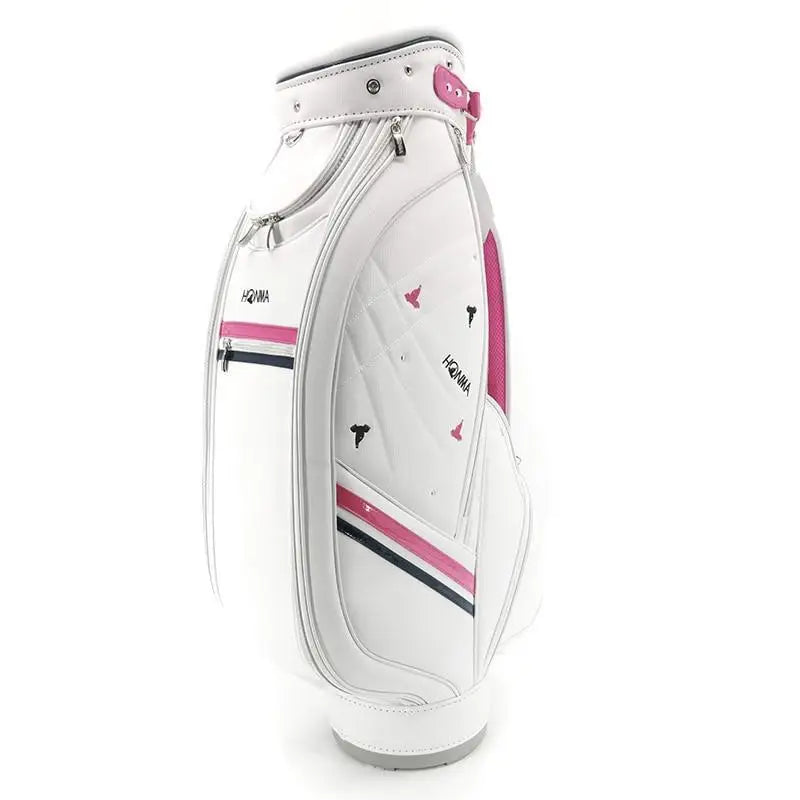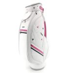 - Élégance sur le green : Avec son design épuré en blanc, rehaussé de touches de rose et de bandes élégantes, ce sac de golf combine fonctionnalité et style féminin.